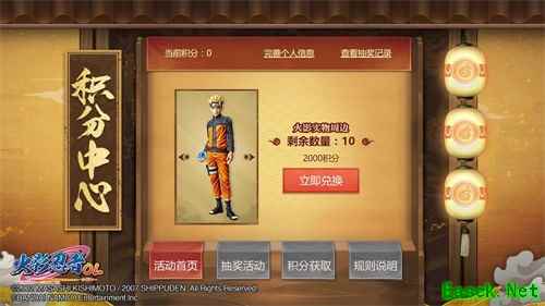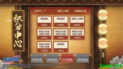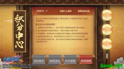 积分福利集结 Q币大奖、游戏道具静待领取! 作为回馈玩家支持与厚爱的福利体系,手中拥有更多积分的玩家,还可以在积分中心进行积分抽奖。Q币奖励、更多积分、游戏道具以及火影实物正版周边奖励必得其一。后续,积分中心福利内容将会持续升级,为《火影忍者OL》手游的忠实玩家带来更多、更好可免费兑换的福利!积分后续可兑换更多更好的奖励,神秘周边等待大家!
