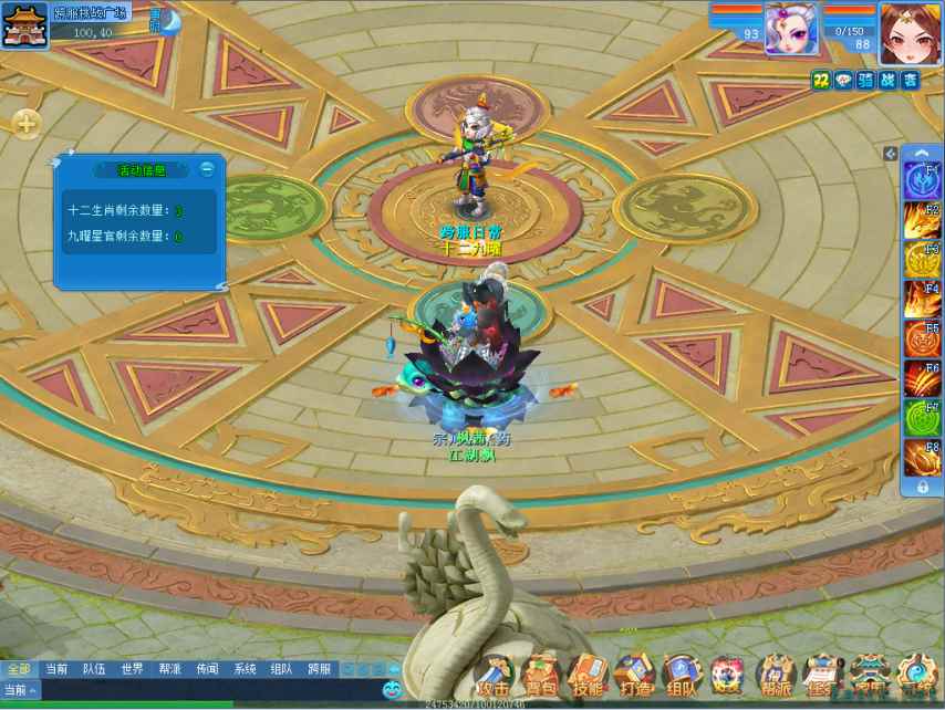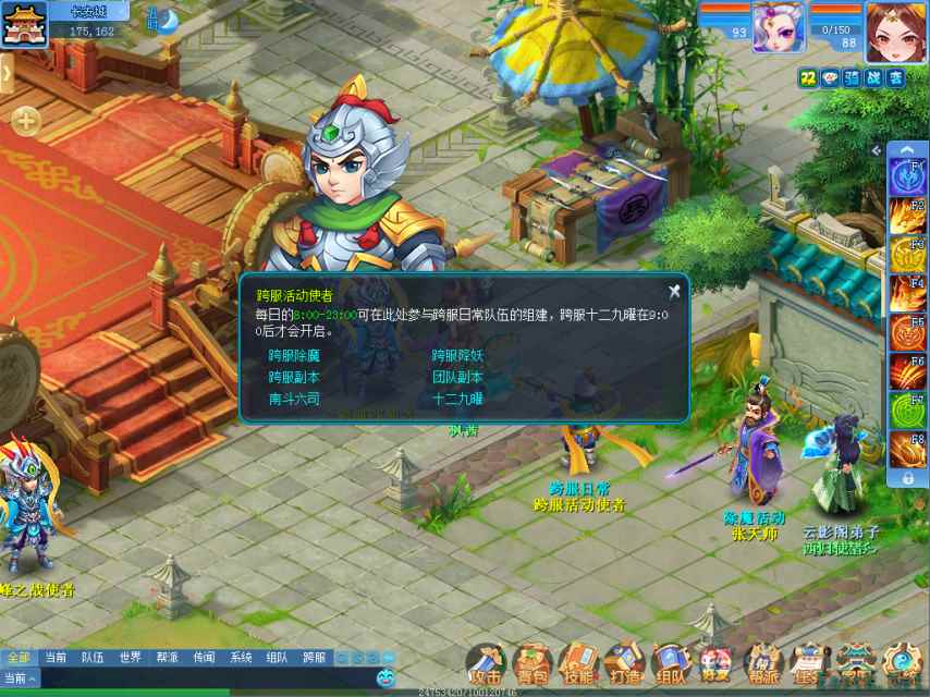 通过跨服活动使者,你还可以与其他服务器的少侠共同挑战副本,也是很方便的。如果你选择了南斗六司或十二九曜活动,使者便会将你传送到专门的地图场景,你可以在这里完成挑战。