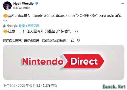 这次引爆热议的并非官方预告或资讯稿,而是内部人士Nash Weedle的推文。随着2025年逐渐成为任天堂的关键年份,这则传闻为其本已密集的内容布局再添一层神秘色彩。 Weedle在X平台推文中透露,任天堂计划在2025年推出一款未公开的重磅软件惊喜。网友推测这可能会与6月Switch2发布后的任天堂直面会相关联——毕竟老任向来习惯通过直面会公布重大消息。 Weedle特别强调该惊喜属于软件范畴,与硬件无关,这排除了新版主机的可能性,却让《马里奥RPG》新作或《瓦力欧乐园》重启等猜测甚嚣尘上。