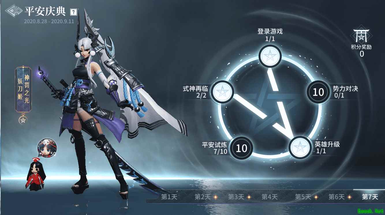 ▲双双绑定解锁联动 【SSR限定式神皮肤100%领取】 要想成功召唤SSR式神妖刀姬,猎手只需在七日内完成活动的每日任务即可。每个任务完成后可以获得平安积分,全部做完总共可获得420分即送限定头像框。积分达到60、120、180、240、300、360阶段时分别可以获得50个妖刀姬碎片,只要集齐300个碎片就可以直接免费兑换联动式神“妖刀姬-神罚之光”。 在来不及完成全部任务的情况下,活动开启后猎手们还可以在商城中购买碎片,玩家可以在商城中最多只能买300个碎片来兑换式神。
