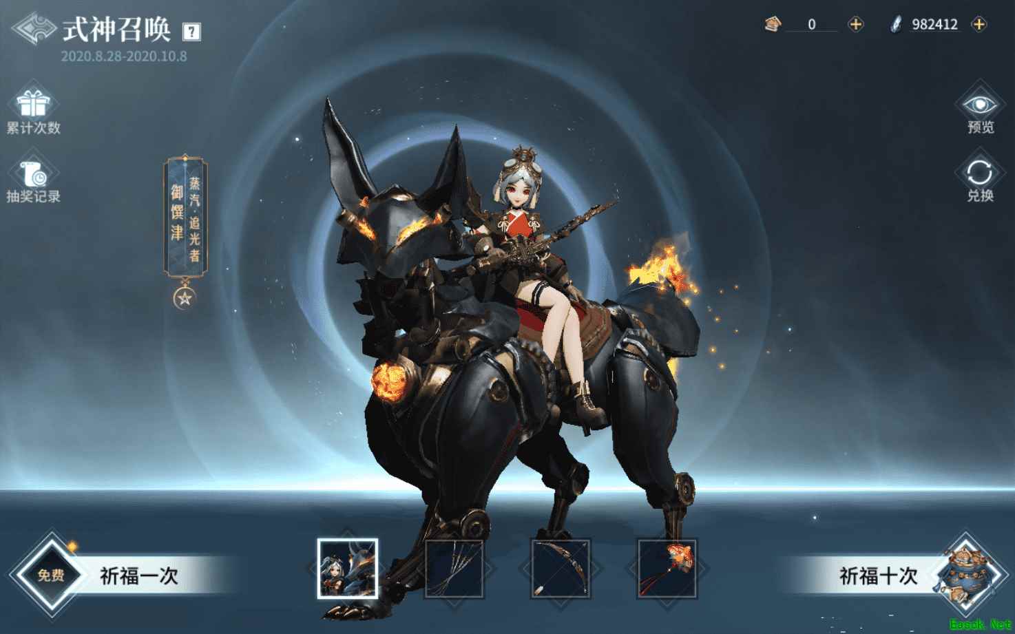 ▲累计分享即可获得山兔 像是山兔和御馔津都是常规坐骑,使用方法和其他坐骑一样,在装备皮肤后猎手只要在战场上骑上坐骑就会自动变身!但是需要注意的是,山兔支持两人共乘,而御馔津则是【式神召唤】中的终极大奖,且只能单人骑坐,在组队的时候猎手们记得别忘了更换坐骑哦。 【式神坐骑,我全都要!】 要想把所有式神和坐骑都抱回家,猎手可以点击【式神召唤】入口进行符咒祈福,每天都有一次免费祈福机会。当然,猎手也可以通过兑换符咒来一发祈福十连抽,看看能不能抽到自己喜欢的式神。此外,大家还可以解锁S2赛季王者令牌以获取100个符咒奖励,用于“式神召唤”。 参与祈福将有机会获得顶尖联动式神,包括:御馔津-蒸汽·追光者、鬼切-二元赋格、白狼-决意和鸩-翎舞花笺以及坐骑、式神头像和技能石。限定式神只能在联动活动期间,通过式神召唤获得,猎手记得要抓紧时间!