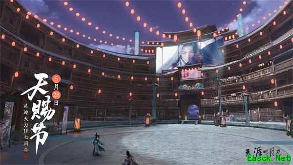 天赐节盛典精彩无限,刀刀将在当天带来IP及端游的重磅爆料,今年盛夏及未来的时光,天刀也将笃定前行,为少侠们带来更多精彩内容。 系列活动探秘客家土楼 多重庆生福利等你赢取 携手世界文化遗产福建永定客家土楼,不仅仅只是庆贺七周年这么简单,天刀江湖中也将展开全新剧情,少侠接信前往东越祝寿,将于白玉京少时生活之地——土楼,触发白玉京剧情任务,以此了解白玉京的过往及客家习俗文化。