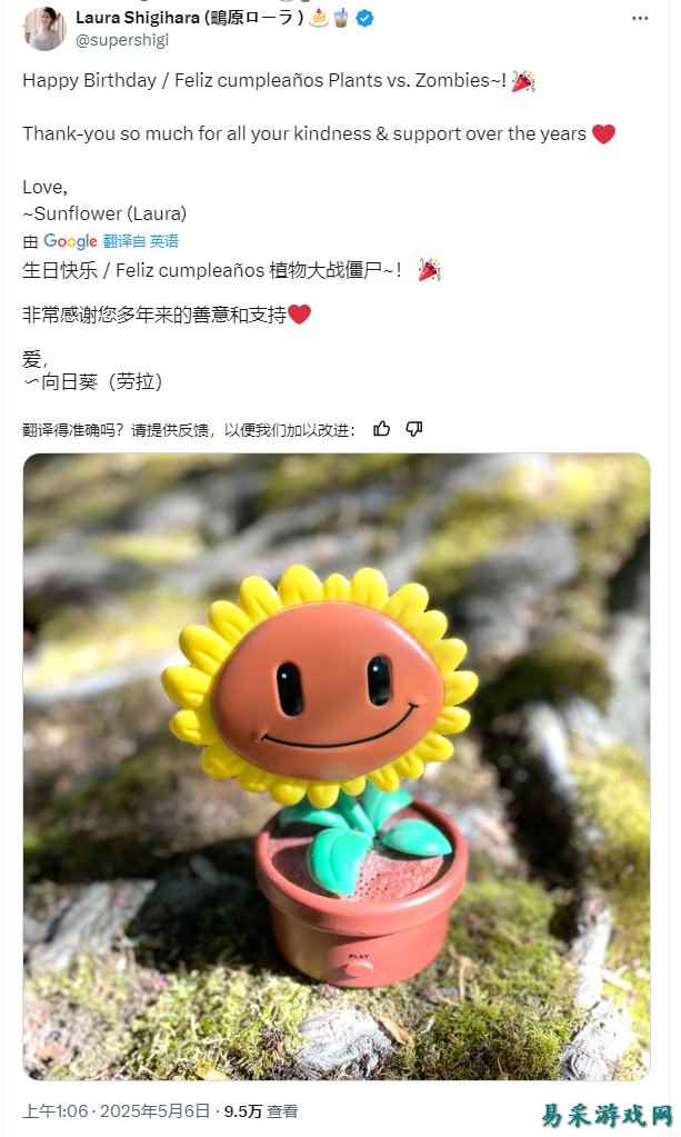 今日,宝开(PopCap Game)旗下经典塔防游戏《植物大战僵尸》迎来发售16周年纪念日。 2009年5月,《植物大战僵尸》正式登陆PC平台,随后很快风靡全球,时至今日仍有大量玩家热衷于研究这款游戏,玩家社区中还诞生了各种魔改版本,可谓经久不衰的最佳游戏代表之一。 为庆祝游戏发售16周年,本作的作曲家及片尾曲演唱者Laura Shigihara(鴫原ローラ)在推特发布了一张经典向日葵作为庆祝。 |