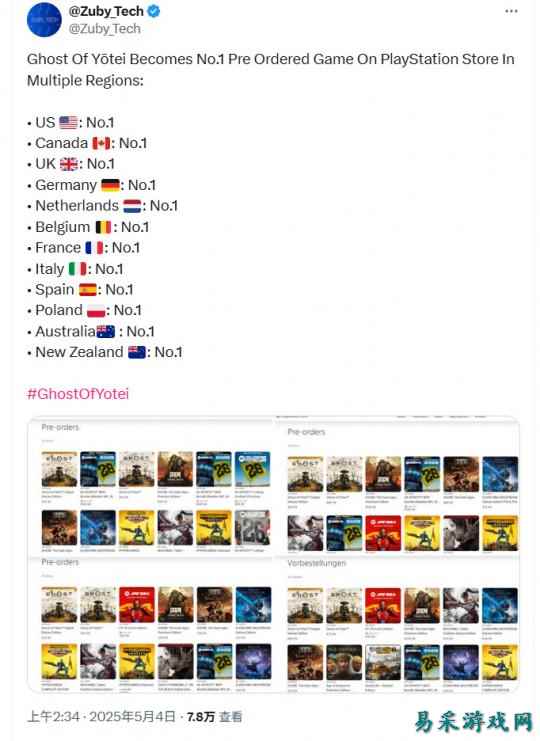 《羊蹄山之魂》成PS商城全球多个国家预购榜第一名