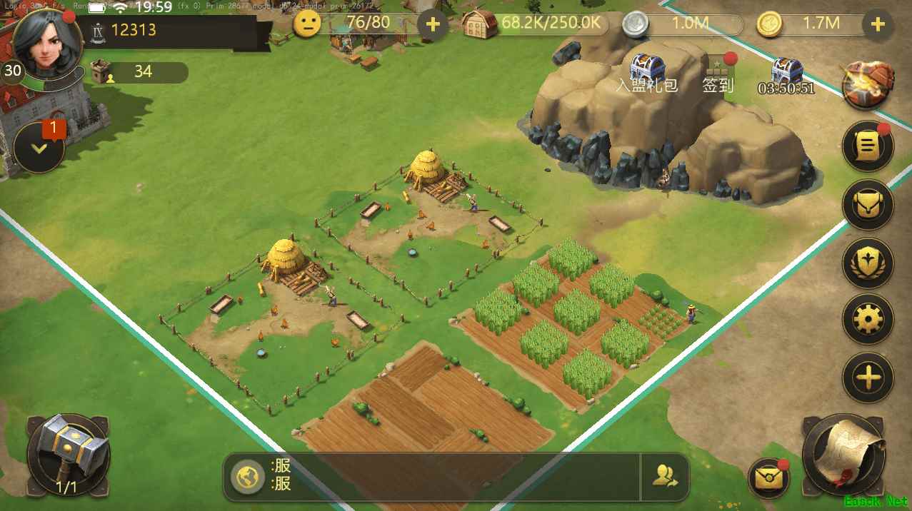 其中,生产建筑主要负责原料供给,且分为原料建筑和加工类建筑。原料建筑是食物和工业原料的重要来源,包括农田、果园、畜牧场、采石场、伐木场等。而加工类建筑中既有食品作坊,也有五金加工厂和武器工坊——其中,食品、五金加工厂功能集中于生产,在等级提升后玩家可以解锁新的产物类型、提升加工速度;而武器工坊不仅能生产,还可以招募不同兵种的武器,也可以解锁新产物,提升加工速度。 军事建筑则包括训练所、军营、军医院、弩炮塔、城墙、城门等。玩家不仅可以在军事建筑里完成对士兵的招募、存放、治愈等,同时也可以通过弩炮塔这类防御建筑保护城市、抵挡敌军、对敌方的人形单位造成伤害。