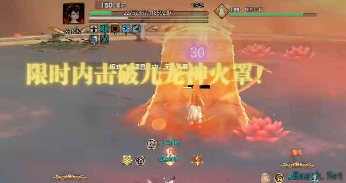 前排:先补充下全封神boss通用的机制(每40秒随机一个): ◇杨戬的技能红圈内外圈会加boss层数,给boss提供增伤减伤 ◇雷震子的小红圈落雷buff减防减输出减治疗(别吃) ◇姜子牙的全屏大劈只有击飞伤害,目前没来及躲也没事(尽量跳)◇哪吒的长条风吹起伤害,目前没来及躲也没事(尽量翻)—.—挑战哪吒—.—1、第一阶段和5人没啥区别,只不过脚下红圈点名出乾坤圈变成了3个、混天绫捆住变4个 第二阶段79%-49%和5人也没啥区别2、第三阶段的定身按F混天绫保护也是一样的 ps:之前体服写的流程有误,长条定身+用混天绫F保护的阶段并没有倒计时(截图倒计时是放莲花的)按F尽量看长条的缩进去按输出不够的队伍后面风火轮消花会出来4个 消完花之后全屏3段跳躲3、增加的机制19%血boss跳中间开启九龙神火罩 截图来自b站up鹿二言AOE技能蹭掉,单体技能需要tab选中
