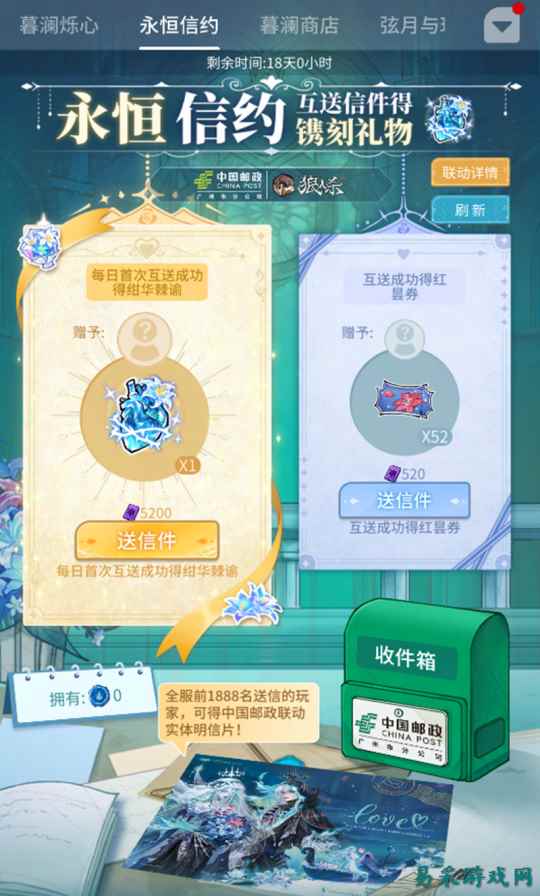 青鸟衔誓, 信动轮回。网易狼?杀x中国邮政(广州市分公司)特约主题送信活动开启,5?17?以信为契,邀你用纸笔书写永世之诺,看邮路渡千年相思,让信笺跨越时间和?海,最终共赴这场爱意的共振。 ![]() 【全新六星时装上线,限定主题明信片来袭】 狼人杀全新六星时装暮澜烁?5月17日正式上线,限量主题明信片同步来袭,本次明信片以时装为载体,诉说着这场跨越冥河而来的无尽的爱意。本次明信片分为男女主时装三种不同的款式,玩家可自行选择喜欢的款式寄出。 ![]() 【永恒信约活动开启,抢限量寄送名额】 5月17日时装上线后,永恒信约活动同步开启,玩家们可前往游戏中活动页面向好友赠送信件,全服前1888名赠送信件的玩家,将获得狼?杀x中国邮政特别定制的暮澜烁?纪念明信?和免费寄送机会。 ![]() 【关注官方媒体平台,获取更多福利】 活动开启后,关注狼?杀官方微博、?红书、TAPTAP、bilibili、?神狼人杀微信公众号等官方媒体平台,即可了解更多联动明信?的相关信息,参与平台活动还有机会免费获得填写明信?机会。 ![]() 【diy明信片攻略】 获得明信?的玩家将收到官方发送的明信?寄送券码,前往指定链接即可挑选明信?款式,填写明信?内容及收信地址后,输?券码即可免费寄送明信?。 ![]() 栀清幽,红昙热烈,那些说不出口的告?和未完成的誓约就以信笺传递?间吧,5月17日,狼人杀与你一起见证! 关于《狼人杀官方》—— 《狼人杀官方》一直以来致力于游戏玩法的打造,力求给玩家带来最满意最优质的玩法体验以及游戏环境,积极开拓全新玩法,女巫、守卫、摄梦人、魔术师、猎魔人等板子应有尽有。 三分钟爆笑推理,随时随地来一局,欢声笑语乐不停!实景操作古风Q萌小人嗨翻浪漫碎叶城,更有全新神职狼王和猎魔人惊喜加盟,更多逗趣任务等你来解锁!8人10人12人超多娱乐进阶模式,明星主播都在玩。快来狼人杀官方,和全网年轻人热闹组局! |