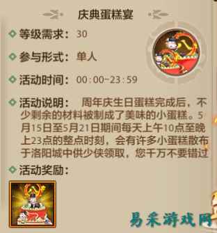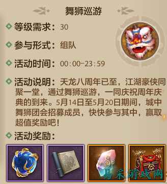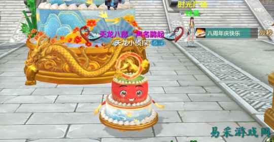 天龙八周年庆典在即,最近老有少侠追问老赵,“还有多少压箱底福利没放?” ,别急,福利这就来!老赵携天龙史上最强福利月第二弹来袭,狂欢无需等待,欢乐即刻开启! 这波福利直接掀翻江湖天花板,奖励多到数不完!周年庆蛋糕开启第二阶段,甜蜜暴击,全服共享豪礼;各路江湖大佬集体化身 “福利派送狂魔”,首当其冲的就是帮会总管,人人都有豪礼拿!舞狮巡游炸街狂欢,天师藏宝暗藏惊喜,时光广场穿越回热血青春......这些仅仅是前菜,更多福利还在路上,速速集结兄弟一起来江湖狂欢! ![]() 之前的新服征名活动也已结束,老赵收到了不少创意名称,经过点赞量与内部评比筛选等综合考虑,最终有两组各5个名称,进入最后的角逐,大家别忘了划到文章末尾,为你心仪的命名投出重要一票!话不多说,一起进入今天的爆料—— 庆典蛋糕宴 天龙最强福利月第二弹重磅来袭!继各位少侠携手完成巨型生日蛋糕制作,蛋糕宴第二阶段即将在全服火热上线。 ![]() 在5月15日-5月21日期间,每天上午10点至晚上23点的整点时刻,会有许多小蛋糕散布于洛阳城中供少侠领取,大家千万不要错过哦! 每天可领取3次周年庆典蛋糕,蛋糕中必定获得蟠龙珠x5和蛋糕变身丹x1,并从以下道具中随机获得一件:英雄馈礼、无方幻符、潜能果福袋或金蚕幼茧。 ![]() 舞狮巡游 既然是周年庆典,自然离不开“吃喝玩乐”和福利,如今“吃”有了,“玩”天龙也要安排上!天龙八周年庆典即将拉开帷幕,江湖各路侠士纷纷汇聚,准备以热闹非凡的舞狮巡游共庆盛典。现诚邀各位少侠前往舞狮,一同感受庆典的欢乐氛围! 在5月14日-5月20日期间,等级不低于30级的少侠,可组成3-5人小队,与苏州舞狮团对话,参与舞狮巡游活动。 ![]() 活动期间,队伍成员需穿上舞狮服饰,在苏州巡游。巡游途中,所有队员需及时摆出舞狮动作完成表演。每有一位队员成功摆出舞狮动作,可增加5点舞狮积分;未及时摆出动作,则不得分。 ![]() 根据舞狮队最终获得的舞狮积分,以邮件形式发放奖励(每日仅可获得1次) 舞狮积分≤100分,将获得山海相逢舞狮礼 使用后必定获得蟠龙珠x8,并从以下道具中随机获得一件:润魂石、打造材料宝箱、纹样图或聚灵宝箱。 舞狮积分>100且≤180分,将获得承梦万里舞狮礼 使用后必定获得蟠龙珠x10,并从以下道具中随机获得一件:打造材料宝箱、纹样图、聚灵宝箱或50灵修值。 舞狮积分>180分,将获得快意江湖舞狮礼 使用后必定获得蟠龙珠x15,并从以下道具中随机获得一件:打造材料宝箱、纹样图、聚灵宝箱、50灵修值或九天灵珀。 龙辉盛典帮会庆 在周年庆热闹的氛围里,各路豪杰纷纷带来好礼,这不帮会总管特为大家准备了惊喜。双倍帮会活动资源等你来赢,属于每一位帮会成员的狂欢即将开启!少侠们可要准时参与~ ![]() 在5月14日-5月27日期间,少侠参与带有“龙辉”标签的帮会活动可得到双倍帮贡、帮会通宝、帮会资金以及帮会武道点数奖励哦 ![]() 双倍奖励,双倍快乐,各位少侠千万不要错过! 天师藏宝 看到江湖豪杰纷纷献礼,老赵也坐不住了,这不,连忙给少侠们备下了惊喜! 在5月15日-5月28日期间,等级不低于25级的少侠,每获得30点活跃值可以积累1点洞察点,用于赵天师藏宝图中寻找珍贵的宝藏!一共有4层宝图数十个宝物,其中还有锦韵内丹福袋,铸纹血玉,卦签,蓝田玉令等珍贵奖励,快来发现它们吧! ![]() 第一层极品宝物:五色神石×5、打造材料宝箱、50万铜钱 第二层极品宝物:阵灵石、翡翠心精×2、五色神石×5 第三层极品宝物:三级宝石箱、卦签、神秘钥匙 第四层极品宝物:铸纹血玉、锦韵内丹福袋、自选地予万灵宝箱 ![]() 时光广场 时光太过匆匆,转眼已是八载,值此天龙八周年庆典来临之际,我们一同追忆时光,穿越回天龙最初的时候,回味共同走过的八年! 在5月14日-5月31日期间,等级不低于15级的少侠,可单人或与好友组队一同在时光广场中重温天龙八年的点点滴滴。 好运流星 活动期间,每日12:00-14:00和19:35-21:35,时光广场将迎来流星雨奇观,少侠可观赏盛景并拾取随机掉落的流星碎片。完成星愿同祈任务后,更珍贵的星愿尘晶将现身场景。 【流星碎片】:时光广场掉落的流星碎片。使用后从以下奖励中随机获得一件:2级宝石宝箱x1、打造材料宝箱x1、无方幻符x1、润魂石x1或蓝田玉令x1,并有一定几率额外获得交友贴纸自选礼盒x1。开启交友贴纸自选礼盒可从以下道具中选择一个:找西皮、找师父、找徒弟或者虹耀石。 【星愿尘晶】:同心祈愿达成之时,自星穹最深处坠入时光广场的至臻碎片。使用后可获得:100绑定元宝x1、心愿币x1、霓耀石x1。 霓裳羽宴 活动期间,霓裳羽宴限时开启,少侠可前往时光广场与羽霓裳对话参与。无论单身或结伴,皆可畅享舞会乐趣,更有惊喜好礼相赠! 每日首次参与舞会可累计次参与次数,累计满8次即可通过邮件领取霓裳八曜礼盒奖励。 【霓裳八曜礼盒】:八度赴宴,赠予此礼。霓裳舞尽,华梦成真。使用后可获得:剑穗x1、青丝图x1、虹耀石x3。 欢乐摇摇车 活动期间,少侠可前往时光广场与姚易耀对话体验摇摇车,还可邀请好友同乘,共赏庆典盛景! 知识问答 活动期间,每日19点15分,参与知识问答活动,就有机会获得精美的小礼品。 【时光纪念礼】:天龙八载,幸甚有你。参与八周年时光广场知识问答获得的纪念礼品。使用后必定获得10绑定元宝x1,还可从:2级宝石宝箱、无方幻符、润魂石