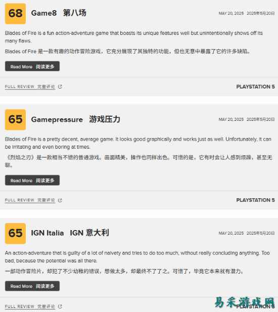 由西班牙游戏开发工作室MercurySteam打造、505 Games发行的全新动作冒险游戏《烈焰之刃》将于5月23日正式发售,游戏的媒体评分现已解禁,M站媒体均分75分。 共35家媒体给出评价,22家好评,13家中评,0差评。 给出好评的媒体表示,游戏创意十足,有着有趣且具有挑战性的战斗以及出色的武器锻造系统。 给出中等评价的媒体则表示游戏虽画面精美但剧情平庸,一些幼稚的错误让这款游戏显得有些无聊。 |