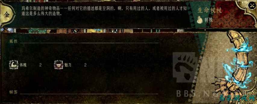 《苏丹的游戏》中的生命权杖卡是游戏里比较重要的特殊卡,而生命权杖的作用是很大的,首先是在玛希尔长期研究之后会触发事件《创造正强者》,给你安装生命权杖(魔力JJ)。生命权杖装上后,如果灵视≥5会触发幻痛,带来疯狂。 苏丹的游戏生命权杖有什么用在玛希尔长期研究之后会触发事件《创造正强者》,给你安装生命权杖(魔力JJ)。 生命权杖装上后,如果灵视≥5会触发幻痛,带来疯狂,此时可以用生命之水将生命权杖卸下,卸下的生命权杖可以拖入俺寻思可以制造承阳剑,每7天战斗+3,在合适的时候可以拔下来用。 装备生命权杖的状态时完成成就撅苏丹的必备条件,可以前期不装,在谋反线左下角倒计时2的时候选择通过《创造正强者》进行安装,完成成就。 如果提前装上生命权杖,且灵视较低无幻痛,会带来一些额外事件,名气传到苏丹耳朵里后会触发殿前试合,这是一个死亡高发的事件,需要带梅姬且需要有激情(激情是否需要达到一定数值忘记了),否则会死。 |