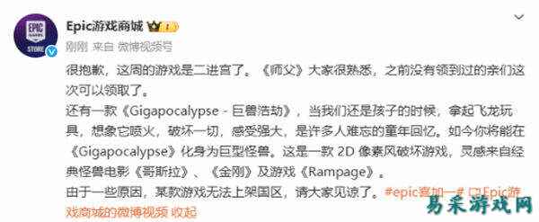 本周Epic限免游戏公布!《绝递必达》国区领取受限,E宝致歉!