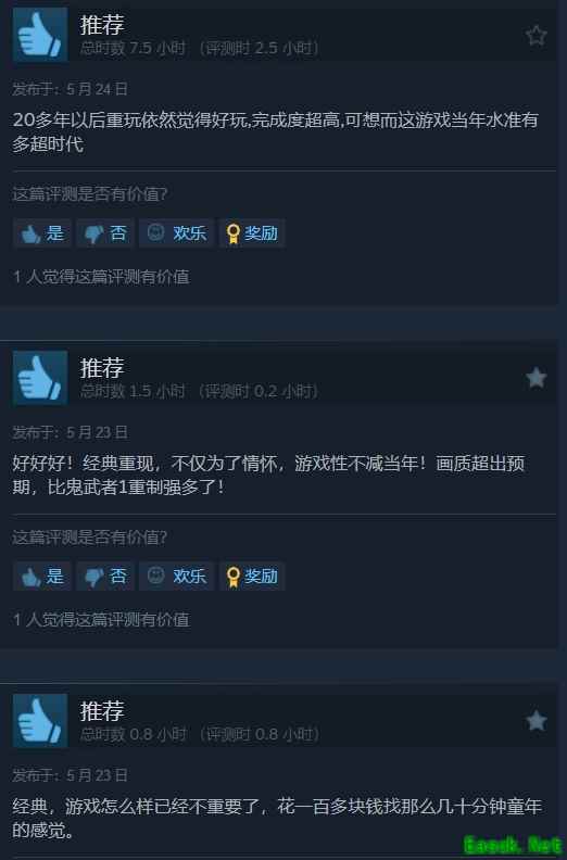 《鬼武者2》高清复刻版已经于昨日正式发售,截至目前,本作在Steam平台共收录了100条玩家评测,好评率87%,为特别好评。 不少玩家都抱着“为了情怀”“回顾童年”的心态入手了本作,有玩家表示:“算是为青春补票了。不明白鬼武者这么经典的IP为什么沉寂这么多年。游戏是很好玩的,希望新作能不负众望”。 不过也有玩家认为本作的表现并不算好:“就是系列粉丝,也不推荐入,垃圾中的战斗机。”“毕竟是老游戏了,放现在多多少少算是赛博电子酷刑” 截至目前,本作的Steam在线玩家峰值为1537人,目前仍有1217人在线。 本文由制作发布,未经允许禁止转载。 更多相关资讯请关注:鬼武者2高清复刻版专区 |