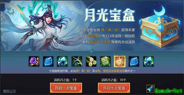 仙术师们可以消耗月之匙打开宝盒,开启一次宝盒将消耗1把钥匙,可以一次性消耗10把钥匙连开十次宝盒,即十连抽。十连抽奖池将升级,必出萌萌哒及金色、橙色自选装备宝箱其中之一,月之匙可以通过商城购买也可以通过活跃度礼包奖励获得。 十连抽的奖池将会进行升级,也即是说,一次性开启十次比十次一次一次开会更加划算!是非是欧,就看这一手啦! |