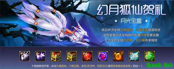 梦三大陆中有许多神秘的坐骑,不过要问哪一个梦梦最想见一面的,非狐仙当属。作为西凉之地和江东之地最神秘之物,家逢六尾玉面者三生之幸也,而得九尾狐仙相伴着,舍天下英雄其谁?在本次的月光宝盒更新中,新增了暗金坐骑—九尾狐仙,金色坐骑—六尾玉面,淬神系列武器重新回归金色宝箱(第五期)。 当然,与此同时,如果已经拥有三尾乘黄的小伙伴,我们也开放了合成通道,可以选择通过合成获得六尾玉面和九尾狐仙哦~ 【淬神系列武器回归 金色装备自选】 淬神系列武器曾经在月光宝盒中出现过,不过后来在第三期中下架,很多小伙伴对此念念不忘,每天问梦梦什么时候淬神系列武器能够回归。 而在第五期金色装备自选中,淬神系列武器回归了!其中包括淬神*金光麟、淬神*金光杖、淬神*金光石、淬神*金光闪和淬神*金光对扇,四圣兽五行翼则依旧存在于本期金色宝箱中。