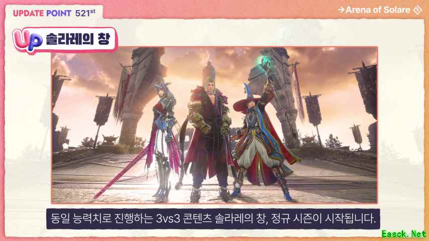 同步开启的还有《黑色沙漠》3:3 PvP内容“索拉雷之枪”正式赛季。赛季将持续至7月2日,玩家可在规定时间内通过排位赛获取积分。