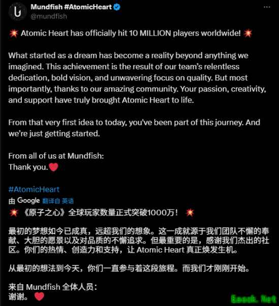 《原子之心》全球玩家数破千万这一消息确实值得关注。首先,这一数字表明了这款游戏在玩家中的受欢迎程度,尤其是在全球范围内。其次,这一成绩也证明了游戏制作组对于游戏质量和用户体验的重视,以及他们在市场推广和发行方面的努力。 首发即进入XGP,对《原子之心》的影响也非常显著。XGP是微软推出的游戏订阅服务,允许玩家在订阅期内无限制地游玩其中的游戏。将游戏加入XGP对玩家来说是一个非常有吸引力的选择,因为它可以提供更多的游戏选择,并且无需担心购买和安装游戏的问题。对于《原子之心》来说,这一策略有助于吸引更多的潜在玩家,尤其是在XGP用户群体中。 此外,首发即加入XGP也有助于提高游戏的曝光度和知名度。由于XGP中的游戏数量众多,加入XGP意味着游戏更容易被玩家发现并尝试。这对于新玩家来说是一个重要的吸引力,因为他们可以在尝试新游戏的同时,不必担心购买和安装的问题。 然而,首发即加入XGP也可能带来一些挑战。由于XGP中的游戏数量众多,玩家可能会对《原子之心》的品质和内容产生质疑。因此,游戏制作组需要确保游戏的品质和内容能够满足玩家的期望,并确保游戏的玩法和机制具有吸引力。 总的来说,《原子之心》全球玩家数破千万这一成绩反映了该游戏在市场上的成功,而首发即进入XGP则为该游戏带来了更多的曝光度和潜在玩家。然而,这也要求游戏制作组在保持游戏品质的同时,应对玩家可能的质疑。 俄罗斯开发商Mundfish宣布,《原子之心》的全球玩家数已经突破1000万! 官方称,最初的梦想如今已成真,远超想象。这一成就源于团队不懈的奉献、大胆的愿景以及对品质的不懈追求。但最重要的是,感谢杰出的玩家社区。正是大家的热情、创意和支持,让《原子之心》真正焕发生机。 2023年时官方曾公布过,《原子之心》发售三周内的玩家数已达到500万。 本文由制作发布,未经允许禁止转载。 更多相关资讯请关注:原子之心专区 |
