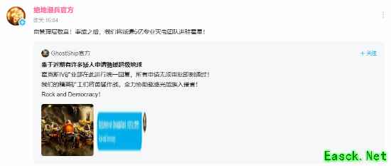 绝地潜兵官方也转发了相关动态,并表示:“向管理层致意!事成之后,我们将派遣5亿专业灭虫团队进驻霍星!”