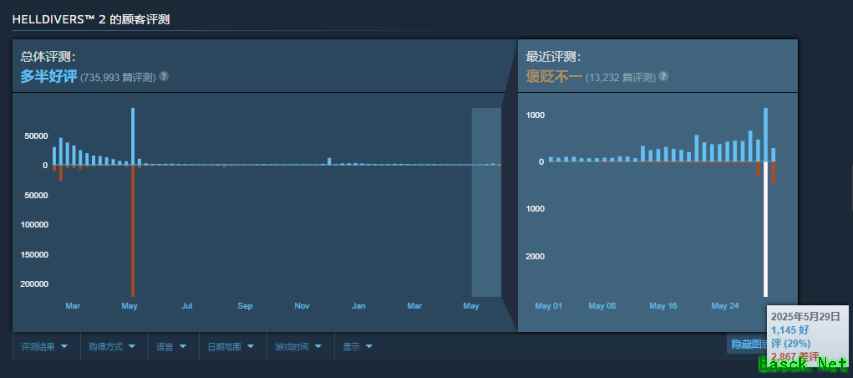 一天收获2000条差评!《绝地潜兵2》又遭玩家差评轰炸