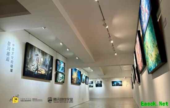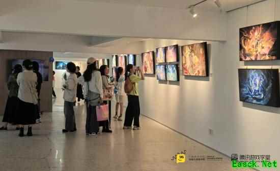 三大主题、86件极具代表性的美术作品,集中呈现了在中国传统文化浸润下的角色与场景设计以及对于东西方文化碰撞带来的思考与表达。展览现场还设置了“王者简历直投通道“,面向准毕业生以及新生代美术大牛开放,鹅厂的大门已经敞开,期待各位的加入。 来国美打卡“第九艺术”,传统文化与数字艺术的交融之旅正式发车 作为在美术界极具影响力的顶尖院校,中国美术学院以其深厚的艺术传统和开放的创作平台,不断拓展与新兴文化领域的融合与对话。火爆出圈的「黑神话:悟空」艺术展就让许多普通观众对游戏中的东方经典IP的时代诠释产生了浓厚的兴趣。 中国美术学院动画与游戏学院在毕业季这一重要的时间节点携手腾讯游戏独立办展,不仅彰显了游戏作为“第九艺术”的价值和文化表达潜能,也是对腾讯游戏在产品中对东方文化展开深度解读与传播的社会责任感予以认可和支持。 “悠游之夏——腾讯游戏艺术长廊”是一场以东方美学为核心叙事的艺术展,分设了“风自东起—传统文化的汲养”“星河邂逅—中西艺术的碰撞”“知行如歌—创作过程的解析”三大主题板块,展现了《王者荣耀》《和平精英》《金铲铲之战》《天涯明月刀》《世界启元》《暗区突围》等游戏在美术探索中的多元成果。