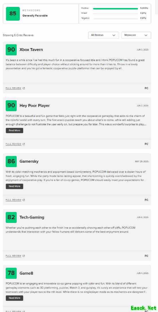 鹰角新作《泡姆泡姆》在M站获得了85分的评分,这表明这款游戏受到了玩家的好评。多人合作趣味无穷,说明玩家们喜欢这款游戏的多人合作玩法,认为它有趣且富有挑战性。 对于玩家来说,这款游戏的影响可能包括: 1. 增加游戏乐趣:多人合作游戏通常比单人游戏更有趣,因为玩家可以与朋友一起完成任务,分享成功的喜悦和失败的教训。 2. 社交互动:多人合作游戏鼓励玩家之间的社交互动。玩家可以一起玩游戏,建立友谊,甚至发展成为长期的游戏伙伴。 3. 新的游戏体验:对于那些尚未尝试过多人合作游戏的玩家来说,这款游戏可能会提供一种全新的游戏体验,让他们感受到合作的力量和乐趣。 4. 挑战与竞争:多人合作游戏也提供了一种挑战与竞争的环境。玩家可以与队友一起克服困难,争夺胜利,这可能会激发他们的创造力和团队合作精神。 总的来说,《泡姆泡姆》的成功可能会吸引更多的玩家尝试多人合作游戏,并促进玩家之间的社交互动和游戏体验的提升。 日前,鹰角多人合作平台冒险游戏《泡姆泡姆》媒体评分解禁,截止发稿,游戏在M站收录5家媒体评分,均分85分。 《泡姆泡姆》游民评测8.6分>> 部分媒体点评: Xbox Tavern - 90分: 《泡姆泡姆》是我近来玩得最开心的一款合作向游戏。它在难度与玩家选择之间找到了绝佳平衡,没有冗长拖沓,同时配合清新可爱的美术风格,呈现出一款人人都能畅玩的优秀合作解谜平台游戏。 Hey Poor Player - 90分: 《泡姆泡姆》是一款既美丽又充满乐趣的作品,合作玩法更是为其多彩世界增添了无穷魅力。游戏的第一关既能引导玩家理解接下来的内容,又保有适度挑战,不至于让人一开始就感到挫败。这款游戏带给我惊喜的体验,故事温馨可爱,合作模式甚至让我想起《传送门2》的双人解谜乐趣。鹰角确实做出了一款精品,我已经迫不及待想继续探索更多内容。 Tech-Gaming - 82分: 不论你们是齐心协力冲向终点,还是不小心将对方推下悬崖,《泡姆泡姆》深知人与人之间的互动才是合作游戏的核心乐趣所在。 Game8 - 78分: 《泡姆泡姆》是一款色彩斑斓、乐趣十足的创新合作游戏。它融合了3D平台跳跃、解谜、三消和射击等多种玩法,非常考验玩家之间的配合默契。虽然没有单人模式,因为核心机制就是为多人设计,但人越多,乐趣也越多。 本文由制作发布,未经允许禁止转载。 更多相关资讯请关注:泡姆泡姆专区 |