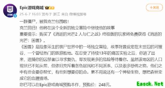 讨论一群僵尸被哈兰超人包围,这与游戏《消逝的光芒:困兽》的宣传相关。这款游戏的宣传可能会对玩家产生以下影响: 1. 吸引注意力:通过宣传一群僵尸被哈兰超人包围的画面,游戏能够吸引玩家的注意力,增加游戏的曝光度和知名度。 2. 提高期待值:玩家看到这样的宣传画面,可能会对游戏产生更高的期待值,希望游戏能够满足他们的期待。 3. 激发探索欲望:宣传画面中的僵尸和超人可能激发玩家的探索欲望,促使他们购买并尝试游戏,体验超人和僵尸对抗的刺激和紧张。 4. 增加社交话题:如果游戏受到广泛关注,它可能会成为社交话题的一部分。玩家可能会在游戏过程中或之后与他人讨论游戏的内容、角色和体验。 5. 提升游戏品质要求:玩家的期待和讨论可能会促使游戏开发者提高游戏的质量,以满足玩家的期望和需求。他们可能会更加注重游戏的剧情、角色和设定,以确保游戏能够满足宣传所带来的期望。 6. 引发争议:有些玩家可能对这种宣传方式有所争议,认为它过于恐怖或暴力,可能会对他们的心理产生负面影响。因此,开发者在宣传过程中需要谨慎处理这些议题。 总的来说,Epic宣传《消逝的光芒:困兽》可能会吸引更多玩家关注并尝试游戏,同时也会引发一些讨论和争议。开发者需要平衡宣传效果和玩家体验之间的关系,确保游戏的品质和氛围能够满足大多数玩家的期望。 在今天早上举办的2025夏日游戏节上,Techland官方公布了旗下新作《消逝的光芒:困兽》最新实机预告片,预计于8月22日正式发售,国区定价248元,为全球最低价! 而就在今天下午,Epic官方也发文宣传《消光:困兽》:一群僵尸,被我克兰包围啦! 克兰回归!他将在这个全新的独立冒险中继续他的故事。 您已可以在Epic游戏商城预购本作,预购价:248元。Epic商店页面>>> 重要提示:购买了《消逝的光芒2:人与仁之战》终极版的玩家将免费获得《消逝的光芒:困兽》。 《困兽》是险象环生的丧尸世界中的一场独立冒险,故事背景设定在末世后的河狸谷,一个曾经热门的旅游胜地。在忍受了持续13年的痛苦实验之后,你逃了出来,追捕你的囚禁者以寻求复仇,却发现更多的危险等待着你。虽然该地区的人口现状已不如从前,但依旧充斥着各色居民和不同派系,以及很多恐怖之物。他们之中有些会要你帮忙,有些则想要你的命。更不用说还有一个神秘生物,想把森林变成它的血腥猎场。 本文由制作发布,未经允许禁止转载。 更多相关资讯请关注:消逝的光芒:困兽专区 |