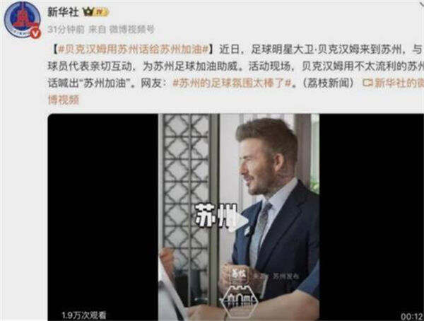 苏超火爆异常!足球巨星贝克汉姆来华为苏超加油!网友:好浓的班味啊!