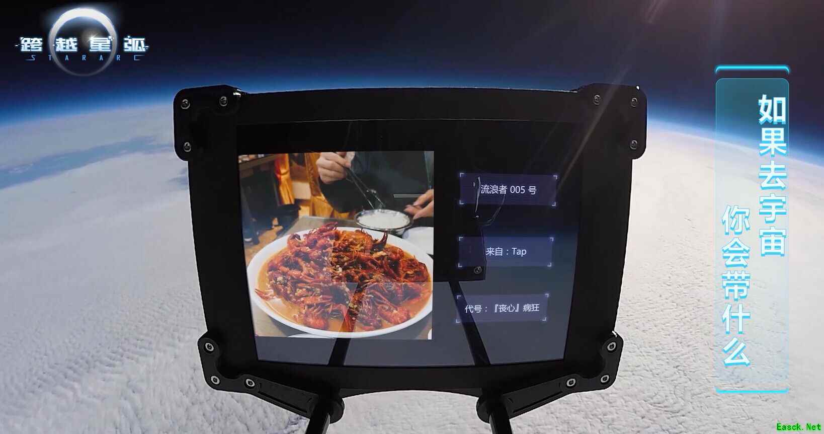 接着,视频开始展示玩家提交的素材。如果能去流浪宇宙,你会想带什么呢?玩家纷纷用视频、照片或是文字给出了自己的答案。 有位吃货朋友,八成是湖南或者四川来的,坚持要带一麻辣小龙虾上去,生怕外星人吃的太清淡。