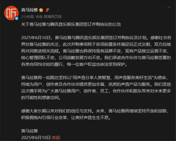 腾讯音乐以12.6亿美元收购喜马拉雅!喜马拉雅:单打独斗不如共享资源!