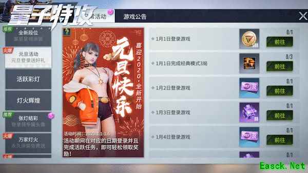 刀马旦新套装,传统与时尚的完美结合 迎新活动齐至,奖励丰厚轻松拿 2020年伊始,《量子特攻》迎新活动也在进行中!漫游者们每天登陆签到,就能领取非凡凭证、超钛合金等超多奖励!入场竞技、击败敌人、生存一定时间等,均可在“张灯结彩”活动中领取彩灯,并兑换武器涂装、专属头像等众多珍稀奖励!轻松参与,所有福利便能收入囊中!