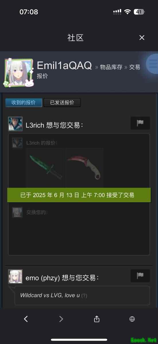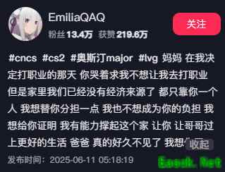 这段文字让不少网友感到悲伤。随后,CS知名战队Aurora的老板L3rich得知此事,送给EmiliaQAQ价值十多万的皮肤,并表示如果EmiliaQAQ能够进入Major淘汰赛的话,就会送给他更多。