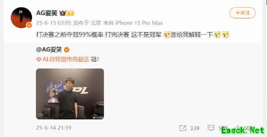 Bin赛后采访称AL只是优胜非冠军 遭网友战队经理怒喷