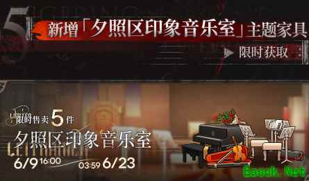 夕照区印象音乐室主题家具限时开放获取,时间:6.9-6.23 和之前一样,除了一部分通过消耗螺丝钉来入手之外,剩下的需要参与这次的S主题活动,通过搬运商店,或者累计任务来入手。