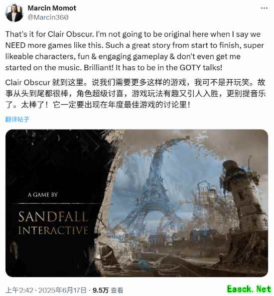 巫师4社区负责人盛赞《光与影》:绝对年度最佳候选!