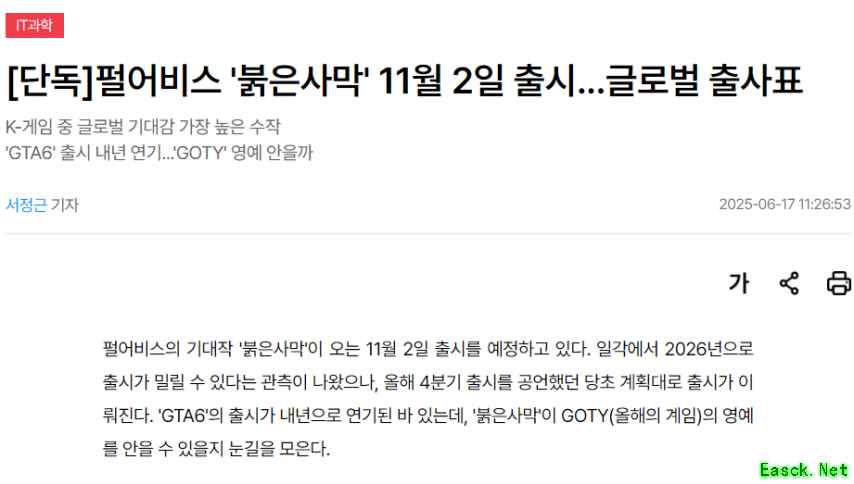 韩媒爆料:《红色沙漠》将于2025年11月2日正式发售