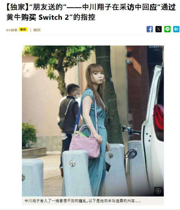 当反黄牛明星陷入“购机争议”!中川翔子回应NS2来源,是朋友赠送?