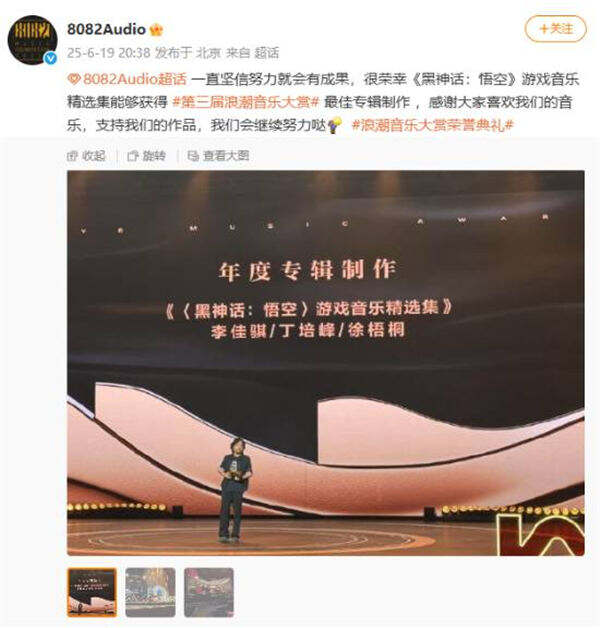 又双叒叕得奖啦!《黑神话:悟空》游戏音乐精选集荣获浪潮音乐大赏双奖!
