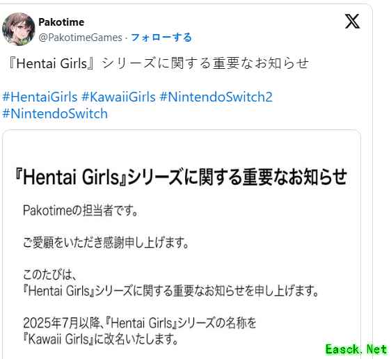 NS人气游戏《变态女孩》突然改名《可爱女孩》或与任天堂规则有关