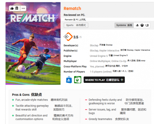 近日,由开发了《师父》的法国独立游戏工作室 Sloclap 打造的全新在线多人足球动作游戏《开球!REMATCH》已正式发售,本作采用快节奏第三人称视角,强调玩家的个人操作技巧和实时团队协作,力求还原足球比赛中“每个动作都可能左右胜负”的临场感。现媒体评分已经解禁,M站均分75分,其中外媒thegamer为本作给出了7分的评价,而媒体Dualshockers给出了6.5分的评价。 媒体评分如下: TheGamer(7/10): 尽管《开球!REMATCH》看起来有模有样,表面上的乐趣也不少,但残酷的现实是,这款游戏的各个方面都显得太过粗糙,根本不可能成为主流电竞项目,甚至无法跻身中等水准的多人游戏行列。游戏的运行表现感觉仍像处于开发中的Alpha版本;其玩法无法支撑起足够高的技巧上限让玩家去追求;基础用户界面(UI)存在大量明显的缺失;而且开发商似乎也缺乏对如何构建一个引人入胜且平衡的长期服务型游戏框架的深入理解。我曾深信这款游戏会是个冠军的有力竞争者,但事实证明,它更像是降级区的球队。 ![]() Dualshockers(6.5/10): 《开球!REMATCH》的底子不错。它充满活力,原始而奔放。但它是块未经打磨的钻石,而且比大多数同类游戏更为粗糙。游戏存在一些严重问题,几乎到了让游戏彻底失去乐趣的边缘。然而,如果玩家能坚持足够久,给开发商Sloclap时间去打磨这些缺陷,去改善服务器,让守门操作变得响应灵敏,那么这款游戏或许真能有所成就。目前来看,它有点一团糟。但这是一款能让你不断回来的“糟”,它迫使你总是想再玩“最后一场”,就为了那可能踢出倒钩帽子戏法的瞬间。而且,这是一款我无论何时都更愿意选择它而非《EA FC》的游戏。 ![]() |