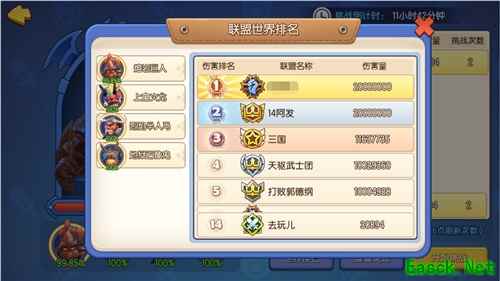 世界排名:按照对BOSS的伤害量进行联盟的世界排名,最强联盟在哪里一目了然~