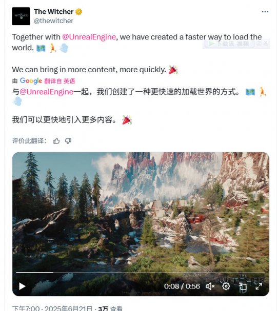 自《巫师4》在本月初(6月3日)首次进行虚幻5引擎技术DEMO展示后,《巫师》官推就不断发布零碎信息,一点一点地向玩家展示《巫师4》这款CDPR力求打造的真正次世代RPG的背后细节。 从希里专属坐骑Kelpie(奔跑时肌肉随动作自然地拉伸、收缩,CDPR利用虚幻5引擎打造了多角色动作匹配,希里与Kelpie自上马到下马,全程动作同步,毫无违和)到全3D树叶(虚幻5引擎Nanite树叶),《巫师》官推正在充分利用这次的虚幻5技术Demo向玩家展示如何定义真·次世代RPG。 在今天,《巫师》官推又从之前的虚幻5技术Demo中截取和编辑了一小段视频,确认CDPR和Epic Games合作,为《巫师4》打造了一个加载世界的更快方法,这将允许CDPR为《巫师4》带来更多内容,速度也更快。 ![]() 这段56秒的视频展现了游戏世界的一瞥,跟随角色穿越丰富多样的地形,在充满活力、细节丰富的环境中进行互动,突显了游戏世界不同区域之间的无缝过渡。视频涵盖了各种景观,从茂密的森林到熙熙攘攘的集镇,所有画面均使用虚幻5以令人惊叹的细节渲染而成。 视频: 视频画面: ![]() ![]() ![]() ![]() ![]() ![]() ![]() ![]() |