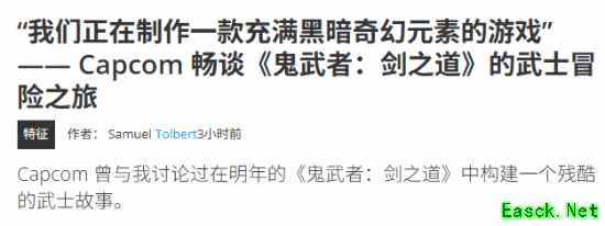 《鬼武者》新作专为次世代而生!制作人解释缺席上世代