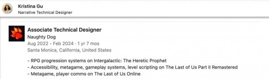 顽皮狗正在全力开发新作《星际:异端先知》,该作是一款科幻动作冒险游戏,具体细节未披露。不过最近一份新的开发者资料为我们揭示了游戏玩法细节,该作将采用RPG成长系统。 ![]() 这一信息来自Kristina Gu的领英个人资料,她曾担任顽皮狗的助理技术设计师,参与过《星际:异端先知》的开发工作。 ![]() RPG成长系统指的是游戏角色在开放世界中完成任务和挑战后升级的机制,比如《艾尔登法环》中玩家可通过经验值提升属性,《地平线》系列中玩家获得经验后可解锁完整技能树。 除了RPG成长系统,《艾尔登法环》开放世界设计和自由探索理念也对《星际:异端先知》产生了影响。 尽管《星际:异端先知》玩法和概念都颇具潜力,但却饱受争议。许多玩家对女主角的设计表示失望,指责顽皮狗强推DEI理念。尽管如此,顽皮狗仍积极开发这款科幻新作。《星际:异端先知》旨在展现顽皮狗迄今为止最具深度的游戏玩法。 |
