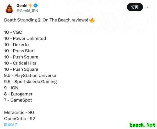 《死亡搁浅2》的媒体评分出炉后,对玩家和游戏产业都产生了广泛的影响。 对于玩家,IGN给《死亡搁浅2》9分的评价表明了这款游戏的质量和吸引力。这个评分肯定了游戏的剧情、角色塑造、视觉效果和音乐,并赞扬了导演小岛秀夫对游戏性的深入理解和出色掌握。这样的高分表明,《死亡搁浅2》在视觉、音效、剧情、角色等方面都给玩家带来了难忘的体验,吸引了大量的忠实粉丝。 对于游戏产业,这是一款备受期待的作品,其媒体评分出炉后,可能会带动其他游戏厂商提高产品质量,以吸引更多的玩家。同时,这也可能引发一场关于游戏评价标准的讨论,即媒体如何定义和评价一款游戏的“成功”。 总的来说,《死亡搁浅2》的高分对其自身和游戏产业都产生了积极的影响,证明了优秀游戏的价值,并鼓励了其他游戏厂商提高产品质量。 至于MTC必玩,它是一个专门针对游戏进行评测的网站,其评分标准和IGN可能会有所不同。因此,它是否必玩《死亡搁浅2》需要看其具体的评测结果和判断。 以上内容仅供参考,如需更多信息,可查看最新的相关评测和报道。 《死亡搁浅2》媒体评分出炉,不少媒体(VGC、Push Square、Dexerto等)给出了满分10分评价,而IGN、GameSpot分别打出9分和7分。 Metacritic上PS5版收录了94个媒体评分,平均得分90分,成功获得“年度必玩游戏”认证。 IGN评分:9分 《死亡搁浅2》是一部成功的续作,完美兑现了前作的承诺。 IGN总评: 初代《死亡搁浅》充满潜力:一部复杂、常令人困惑、却从不显得做作的初稿。那是一段横跨失落美利坚的沉思之旅,它用华丽的方式建立了一个世界及其规则——尽管在旅途中我觉得它偶有踉跄。但在《死亡搁浅2》中,舞台转向澳大利亚,它带来了更宏大的愿景,并在几乎所有方面都实现了突破。这部续作几乎消除了初代所有令人沮丧的阻碍,以一个真正出人意料、充满悬念的故事惊艳登场,并在其辽阔、令人毛骨悚然的美丽澳洲地图中,隐藏着可自由发挥的潜行动作游乐场。 是的,它有时依然非常怪诞——但这并不是它的定义所在。这是一段充满震撼与敬畏的创造性旅程,是那种值得被鼓励的大胆之作。它称不上完美,但却极其令人兴奋且独具原创性,从不偏离那条少有人走的路,而我因此更加深爱它。 VGC评分:满分 《死亡搁浅2》是一部史诗级的大制作续作,经典作品《死亡搁浅》的史诗级大制作续作。本作在剧情上更为出色,角色阵容极为精彩,世界美丽动人、等待你重新连接。《死亡搁浅2》像是小岛自离开科乐美后所有心血的结晶,它无疑是2025年最优秀的作品之一。《死亡搁浅2》是一部史上最伟大的续作,也是小岛秀夫最杰出的作品之一。它拥有令人惊叹的世界、大幅扩展的玩法和玩家选择,以及小岛秀夫最引人入胜的演员阵容和叙事,几乎在各个方面都显著提升了前作。 出色、多变、适应性强的玩法 游戏画面堪称有史以来最精美之一 群星云集,献上助力小岛最佳剧本的精彩表演 澳大利亚作为地图更大、更好、更具生机 原声音乐绝妙,仿佛小岛亲自发来的一份播放列表 游玩70小时后仍有部分动画重复 其他媒体评分: |