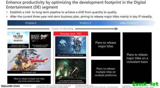 而据一位与会人士透露,Square Enix在最近的股东大会上再次向股东概述了他们的这项三年重启计划,主要内容有: 1、从数量转向质量; 2、2025年4月至2028年3月,计划在多个平台上发布主要作品; 3、经过三年的重启,他们计划持续发布关键IP的主要作品。