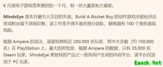 外媒称《心之眼》玩家总数不足25万,可能会对玩家产生以下影响: 1. 游戏热度降低:如果玩家总数下降,可能会导致游戏热度降低,影响游戏的在线活跃度和广告收入。 2. 游戏内物品价格下降:玩家总数减少,可能会导致游戏内物品的交易量下降,进而导致物品价格下降。 3. 游戏社区氛围变化:如果玩家总数下降,可能会导致游戏社区的氛围发生变化,如出现更多的抱怨和负面情绪。 4. 游戏更新和优化受影响:如果玩家总数下降,游戏开发团队可能会减少对游戏的投入,导致游戏更新和优化的频率和力度降低。 不过,具体的影响还取决于游戏的类型、玩法、社区环境以及玩家群体特征等因素。此外,对于一些游戏而言,即使玩家总数下降,依然可能有忠诚的玩家群体在支持着游戏。 游戏产业媒体The Game Business援引安培分析的最新数据显示,《心之眼》《FBC: Firebreak》《沙丘:觉醒》与《开球!Rematch》等六月重点新作的玩家数量已出炉。 《心之眼》的发行堪称一场公开灾难,PlayStation玩家因严重技术问题集体退款,开发商Build a Rocket Boy已启动涉及约100人的裁员程序。据安培分析统计,该作玩家总数不足25万,其中PlayStation平台约占15万。而在唯一开放用户创作功能的Steam平台,玩家数仅3.5万。这款2025年迄今口碑最差的游戏虽在持续推出热修复补丁,但开发商能否扭转其处女作的颓势仍存疑——尤其当作为核心增长点的用户生成内容平台仅向最小比例玩家开放时。 报道同时指出《FBC:Firebreak》首发表现欠佳,尽管全平台玩家总数达130万。对于主打多人联机的游戏而言,这些数字显然未达预期,且XGP与PlayStation Plus的订阅服务意味着多数玩家并未产生直接购买行为。不过开发商Remedy强调这是其首次涉足多人游戏领域,并在达成百万玩家里程碑时表态:"我们深知前路艰辛,但充满斗志。《FBC:Firebreak》将迎来一系列精彩更新!" 相比之下,《沙丘:觉醒》在Funcom官宣后玩家数突破120万;独立游戏《PEAK》首周销量破百万,当前玩家数超220万;《开球!Rematch》凭借XGP加持,其Xbox玩家达158万,PlayStation版近80万,PC版超110万。开发商Sloclap即将推出的跨平台联机功能,或将为这款开局强劲的作品注入新活力。 |