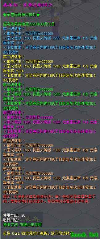 根据各区封印不同,奖励略有差异,以游戏内为准!7、嘉年华狂欢买就送活动时间:6月27日 10:20-7月3日活动区服:150封印解封区嘉年华狂欢买就送,达成指定积分即可获得豪华山河图自选、神铭拓文·神王降临等好礼,达成3万积分可获“嘉年华·至尊压制神力”BUFF碎片奖励! 根据各区封印不同,奖励略有差异,以游戏内为准!“嘉年华·至尊压制神力”BUFF,最高可获数十万元素固伤加成,攻击至尊压制神力BUFF低于自身的角色时,增加伤害! 根据各区封印不同,奖励略有差异,以游戏内为准!