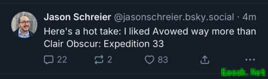 彭博社记者的言论可能会对《宣誓》和《33号远征队》的玩家产生一定的影响。具体来说: 1. 认同感:一些玩家可能会因为彭博社记者的评价而对这两部作品产生不同的看法,这可能会影响他们对作品的情感认同。 2. 游戏体验:玩家在玩游戏时,通常会根据自己的兴趣和偏好来选择游戏。彭博社记者的评价可能会改变一些人的游戏选择,进而影响他们的游戏体验。 3. 社区氛围:在某些游戏社区中,彭博社记者的言论可能会引发争议,导致社区氛围变得紧张。 4. 心理影响:一些玩家可能会因为彭博社记者的评价而对游戏产生负面情绪,这可能会影响他们的心理健康。 总的来说,彭博社记者的言论可能会引发争议,并对某些玩家的游戏选择和游戏体验产生影响。然而,这种影响的具体程度和持续时间会因个体差异而异。 彭博社游戏记者Jason Schreier近日发推,坦言他个人喜欢《宣誓》,远远胜过今年的好评游戏《光与影:33号远征队》。这在社交媒体上引起了不小的争议,不少人对其口诛笔伐。 随后,Schreier解释称《宣誓》胜在有“更强大的剧情”、“更好的艺术方向”和“好很多的探索”,但一名玩家立马纠正说:“玩过这两款游戏后,他的看法错得离谱。” 一名网友讽刺道:“这就是如今自称是游戏记者/评测人士的人真面目,他们只不过是披着游戏资讯的外衣,来达到他们政治意识形态的目的。我们正在实时目睹游戏资讯业的自我毁灭,他们每次发言都会失去越来越多的信誉。” 网友:《宣誓》就是垃圾 网友:今年我的年度游戏就是《33号远征队》 推主Rino更是利用这波机会来肆意炒作:《光与影:33号远征队》好于《艾尔登法环》,这就有点太那啥了 |