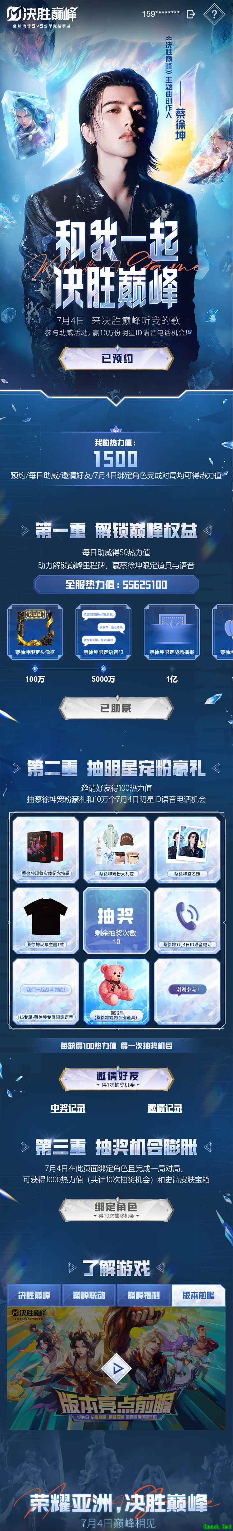 蔡徐坤邀你一起决胜巅峰!《决胜巅峰:荣耀亚洲》新版本7月4日上线