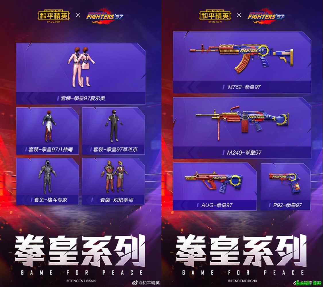 在三款套装之外,《和平精英》还将推出几款《拳皇》的联动枪械: