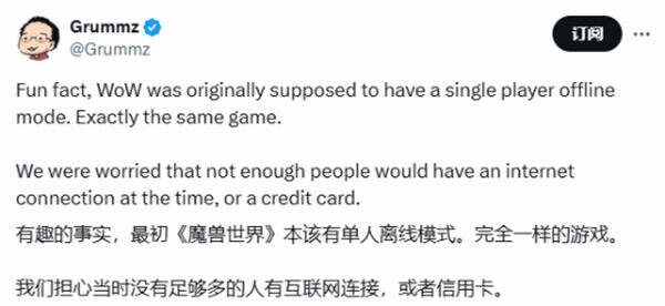 单人离线模式版《魔兽世界》?推出原因竟是官方害怕玩家没有信用卡支付!
